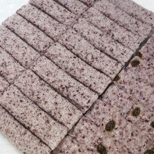 난 제사때마다 보던 떡인데 기정떡을 처음 듣는 사람도 있었다. 사는 지역 혹은 집 특성마다 다른 듯. 어릴 적 할머니에게 이게 뭐냐고 물었을때 강한 사투리로 '기--정'이라고 하셔서 지역마다 다르게 부르는 명칭 중 하나인 줄 알았는데, 실제 이름도 '기정'떡이더라. 제사때마다 보던 기정떡은 늘 하얀 백미기정떡이었는데, 다양한 맛이 있다고 해서 한 번 흑미를 주문해보았다.